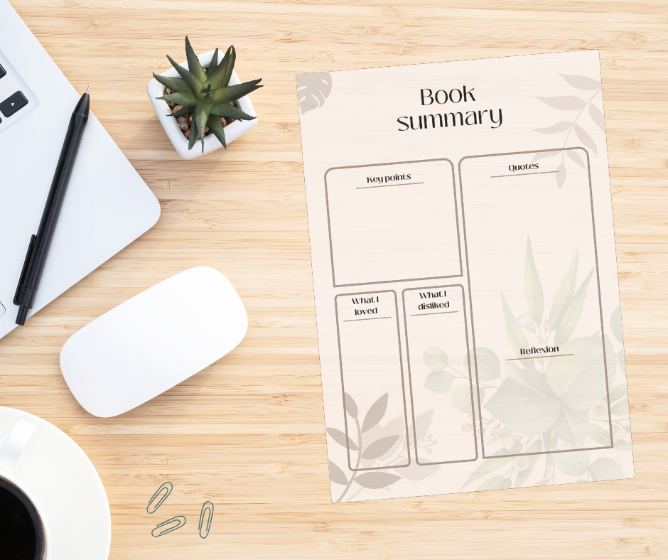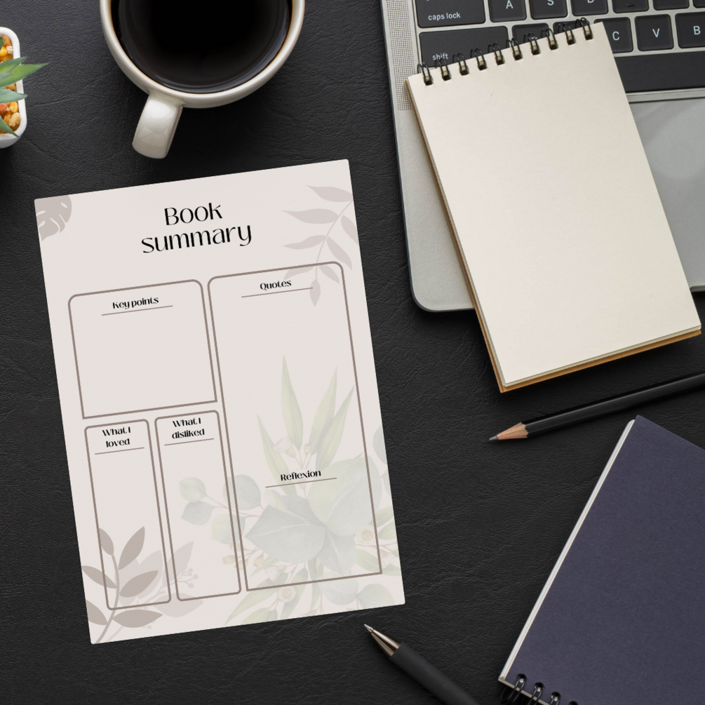 Featuring dedicated sections for key points, notable quotes, what you loved, what you disliked, and reflections, our Book Summary Sheet empowers you to summarize and analyze the book's content comprehensively. Whether you're a student, book enthusiast, or lifelong learner, this versatile tool will help you retain information, spark discussions, and deepen your understanding of the text.