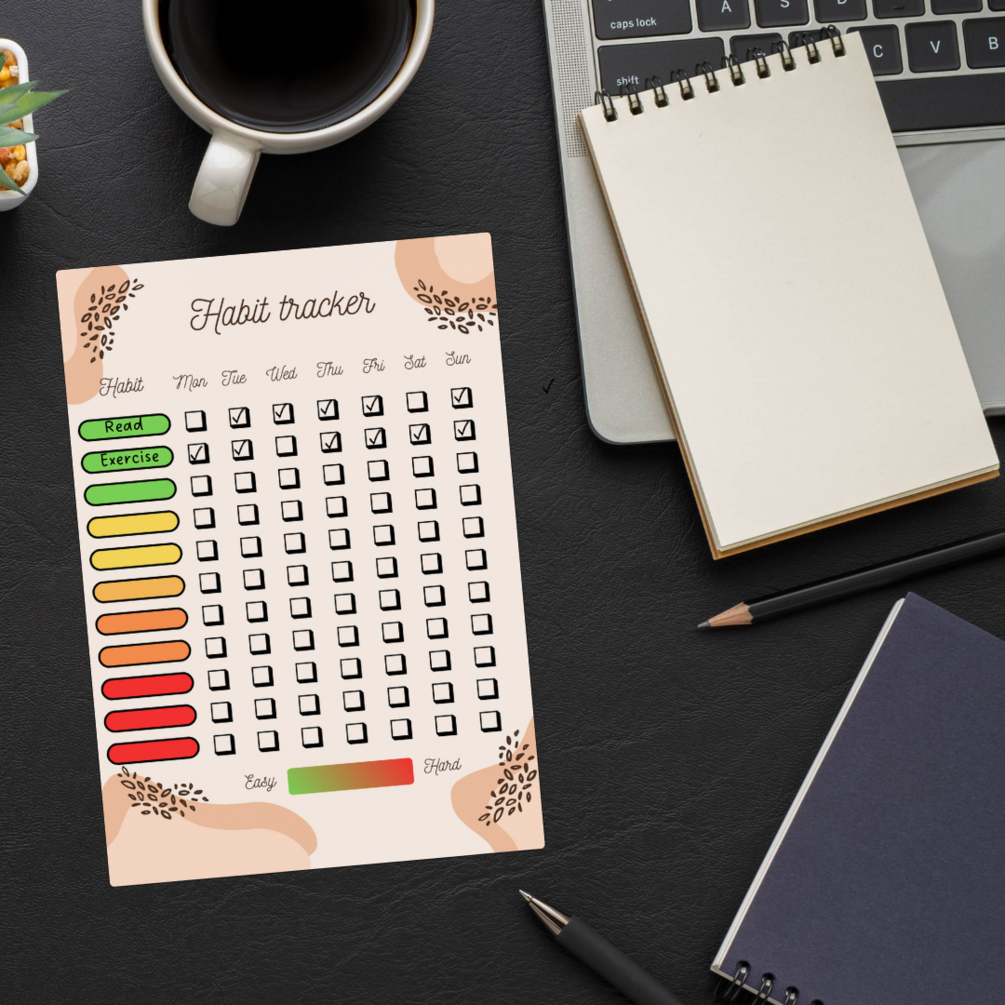 Printable on standard paper, our Habit Tracker is perfect for use at home, in the office, or on the go. Whether you're aiming to drink more water, exercise regularly, or read daily, this versatile tool will keep you accountable and motivated on your journey to self-improvement.