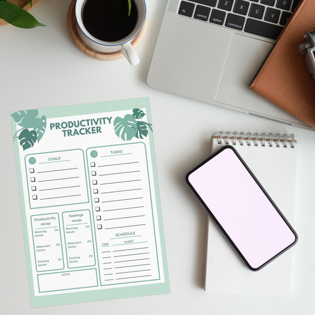 With a structured layout and intuitive design, our Productivity Tracker makes it easy to set goals, prioritize tasks, and schedule your day effectively. Whether you're juggling work projects, personal tasks, or creative pursuits, this versatile tool will help you stay on track and make the most of your time.
